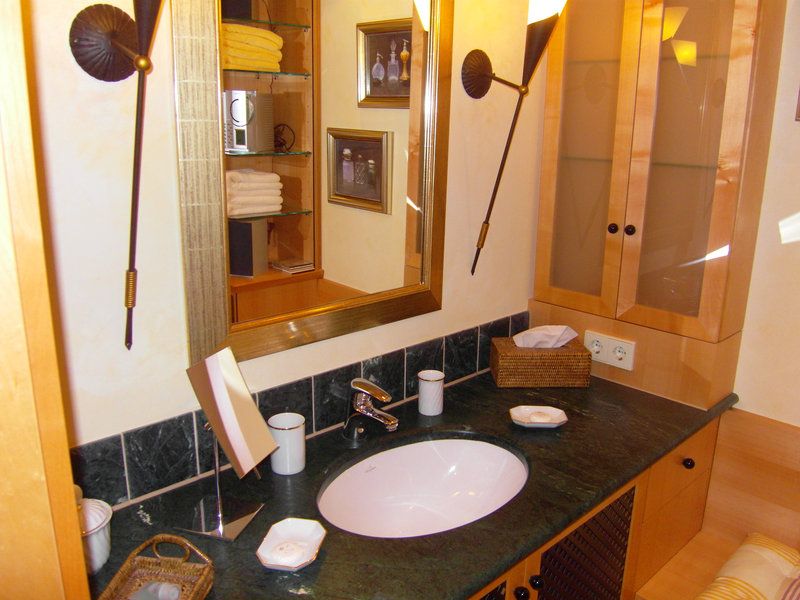 Die Badezimmer sind mit Marmor ausgestattet und verfügen über hochwertige, flauschige Frotteewäsche, Bademäntel, Badeschuhe, Haartrockner, Vergrößerungsspiegel, beheizte Handtuchhalter, Fußbodenheizung, CD-Anlage, Telefon und teilweise TV.